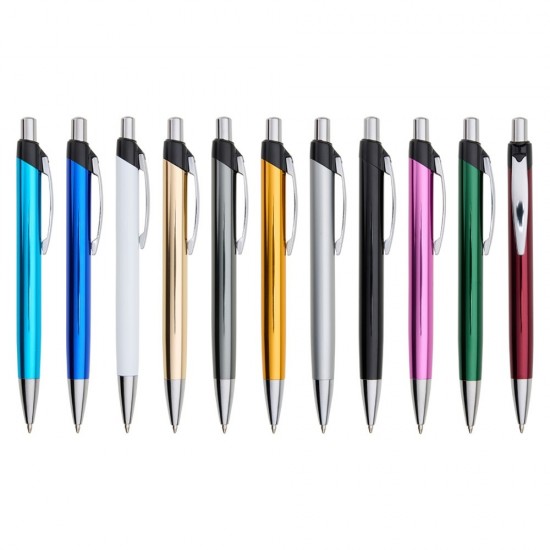 Caneta metálica com acionamento por clique, carga esferográfica azul 1,0mm.